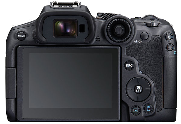 La fotocamera è provvista di mirino OLED da 2,36 milioni di punti e di uno schermo touch articolato da 3 pollici da 1,62 milioni di punti. Presente un doppio slot per schede SD UHS-II, una porta USB-C, due jack per cuffie e microfono da 3,5mm e una porta micro HDMI. Il corpo macchina è tropicalizzato. La batteria è la stessa LP-E6NH utilizzate su Canon EOS R5 e Canon EOS R6 e che promette fino a 770 scatti tramite lo schermo in modalità risparmio energetico, e fino a 500 utilizzando il mirino elettronico. Si scende, rispettivamente a 660 e 380 scatti senza modalità risparmio energetico.