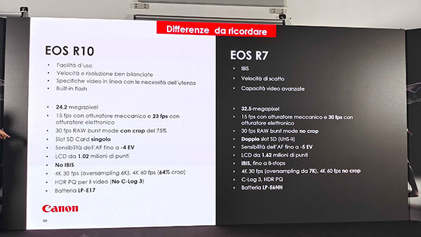 Canon EOS R10 è la "sorellina minore" di EOS R7, costruita attorno ad un sensore APS-C da 24 megapixel con Dual Pixel AF. Le prestazioni di scatto rimangono di 15 frame al secondo con l'otturatore meccanico, mentre scendono leggermente a 23 fotogrammi al secondo con l'otturatore elettronico. Non cambia il sistema di messa a fuoco, che è di fatto identico a quello di R7, ma non c'è il sensore stabilizzato.