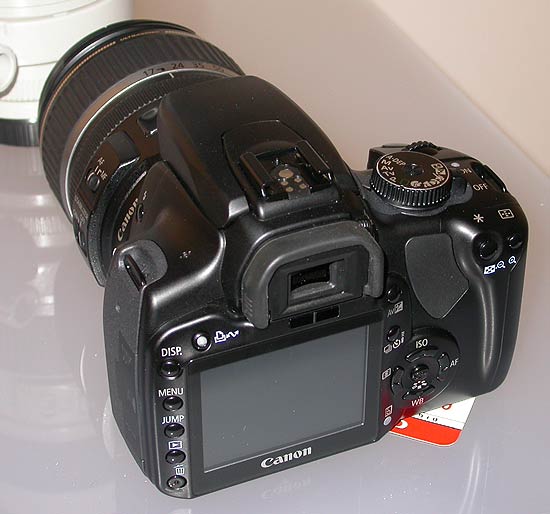 - Angolo di visuale del display raddoppiato, passando da 80° a 160°, così come viene aumentata la luminosità del pannello stesso. Aumentate anche le dimensioni, passando da 1,8" ai 2,5" della 400D.