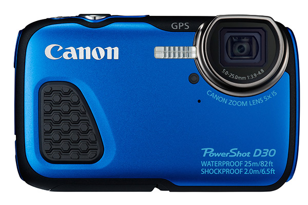 PowerShot D30 costituisce un aggiornamento di gamma nel settore delle fotocamere compatte rugged e subacquee. Questo nuovo modello può immergersi fino a 25 metri di profondità, cadere da altezze di 2 metri senza subire danni e funzionare senza problemi fino a una temperatura di -10°C. L'obiettivo integrato vanta uno zoom ottico 5x con una focale di partenza di 28mm equivalenti nel formato pieno (140mm all'estensione massima), dietro il quale troviamo un sensore da 12,1 Megapixel.
