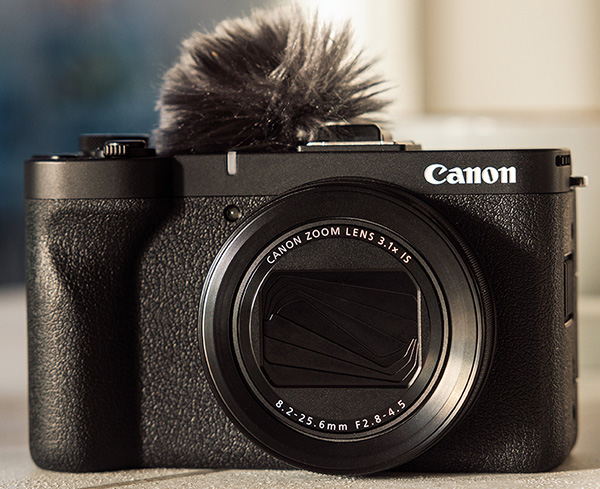 Considerando il fatto di crop, l'ottica integrata con focale real 8,2-25,6mm F2.8-4.5 (9 elementi in 8 gruppi) ha una focale equivalente di circa 16-50mm sul formato pieno. Il nome Canon PowerShot V1 lascia intendere che la nuova fotocamera abbia una spiccata anima da Vlogger e si indirizzi in modo netto ai content creator. A confermare questa vocazione la presenza di un display articolato di tipo vari-angle, la fornitura di una protezione antivento per i microfoni. Visto il pubblico d'elezione, non rappresenta una mancanza di rilievo - rispetto alle vecchie compatte Powershot premium - l'assenza di un mirino elettronico e del flash.
