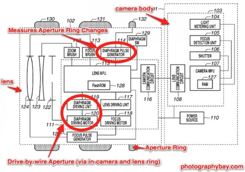 Il produttore giapponese sarebbe al lavoro per riportare la ghiera dei diaframmi sui barilotti delle ottiche, cercando di venire incontro alle esigenze di chi utilizza le reflex anche per la registrazione di filmati. Un brevetto pubblicato da Photography Bay va proprio in questa direzione, duplicando il comando solitamente collegato alla ghiera sul corpo anche sull'obiettivo.