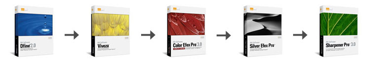 Dfine riduce il rumore nelle immagini dovuto a componenti cromatiche indesiderate, banding e rumore dovuto al contrasto, Viveza permette il controllo della luminosità e colore delle immagini in maniera puntuale e controllata, Color Efex 3.0 raccoglie una galleria di filtri votati alle più svariate applicazioni, ritocco immagine e controllo colore. Silver Efex Pro è studiato appositamente per generare viraggi in bianco e nero attraverso il controllo dei filtri colore, simulazione del comportamento di diversi tipi di pellicola e simulazione della grana; infine Sharpener Pro 3.0 consente di ottimizzare il contrasto in funzione della tipologia di stampa e dimensione della stessa.