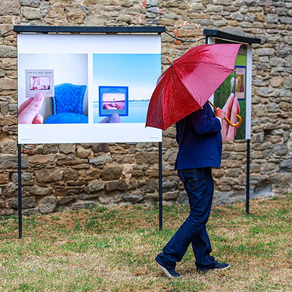 La fortezza si arricchisce di una nuova location, il bastione. Consigliamo vivamente la visita a questa porzione appena recuperata (o per meglio dire ancora in via di recupero definitivo), non solo per le due mostre che troverete all'interno, ma soprattutto per gli scatti del progetto Leaving and Waving di Deanna Dikeman che incontrerete lungo il muro di cinta. Come tutti i progetti di lungo corso, questa serie di immagini dei genitori, riprese ogni volta che la fotografa andava a trovarli, sono in grado di raccontarci il passare del tempo, l'invecchiamento e l'ineluttabile addio. Sempre in esterna, questa volta nel cortile della fortezza, il progetto No Memory Is Ever Alone di Catherine Panebianco: l'autrice ha recuperato le diapositive scattate dal padre ai tempi della sua infanzia e ritrovandone i luoghi le ha inserite, in modo del tutto analogico, all'interno della realtà attuale.