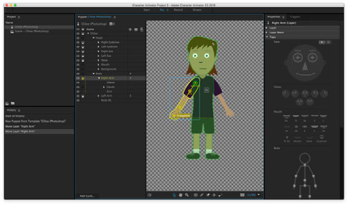 Per Character Animator, novità relativamente recente di CC, è ufficialmente terminato il periodo di beta testing. Si tratta di un'applicazione che consente di animare personaggi 2D creati con Photoshop o Illustrator, riprendendosi con una videocamera e un microfono. Il programma riprodurrà le espressioni facciali, sincronizzando i movimenti delle labbra con il parlato (nuova tecnologia Sensei per una migliore corrispondenza rispetto alla beta finora disponibile). Potenziata anche la gestione degli arti grazie alla gestione automatica delle parti, ora riferite al componente-padre.