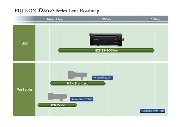 Al NAB di Las Vegas, invece, Fujifilm ha aggiornato la roadmap dei propri obiettivi broadcast, annunciando che per il 2024 sono previsti due obiettivi Serie Fujinon Duvo, compatibili con sensori di immagini di grandi dimensioni e caratterizzati da maggiore portabilità rispetto alle ottiche 'Box': uno con focali da 24 a 300mm e l'altro con focali molto grandangolari.