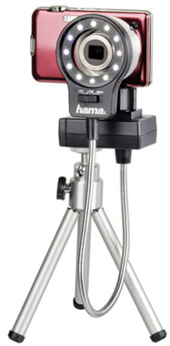 Grazie al crescente interesse del pubblico verso la fotografia macro che le compatte hanno saputo ingenerare, ora cominciano a nascere linee di prodotto a esse dedicate. Hama ha lanciato sul mercato un piccolo flash anulare a LED, pensato per fotocamere compatte con lenti fino a 32mm di diametro. Dotato di 12 LED regolabili su due intensità il flash funziona sfruttando l'energia di tre batterie ministilo AAA, inserite in un corpo in plastica da inserire tra l'attacco del treppiede e la fotocamera.