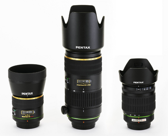 Innanzitutto un obiettivo a focale fissa, il PENTAX-DA*55mm F1.4 SDM, che offre una lunghezza focale di 84,5mm nel formato equivalente 35mm e una apertura massima del diaframma di F1.4 e a seguire uno zoom-tele, PENTAX-DA*60-250mm F4 ED [IF] SDM con lunghezza focale da 92mm a 383mm.