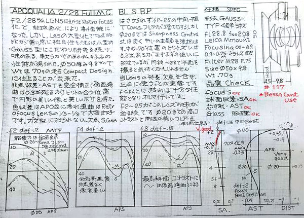 Japan Camera Hunter scende nel dettaglio nell'analisi della nuova ottica: l'astigmatismo è totalmente corretto, mentre rimane una leggera curvatura di campo, pari a 0,3m/m. A piena apertura si ottiene un'immagine di buona risoluzione con un circolo di copertura di circa 20mm, mentre al di fuori di questo cerchio il contrasto e coma risultano evidenti, dando un carattere molto definito al bokeh. A F4 la qualità d'immagine è elevata su tutta l'inquadratura. L'ottica è al momento in pre-order e bisognerà aspettare un po' per poterla avere tra le mani, visto che la produzione è molto limitata.