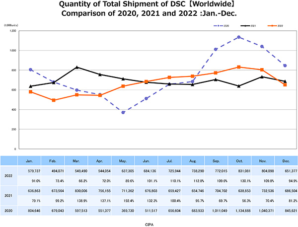 Nella sua totalità (compatte, mirrorless, reflex) il mercato delle fotocamere ha visto nel 2022 una leggera diminuzione nel numero di pezzi spediti, ma un aumento del valore . Le compatte hanno visto un calo su tutti e due i fronti, con una netta diminuzione a valore, controbilanciata da una sostanziale tenuta a valore, con dati pari a un calo - rispettivamente - del 31% e 4%.