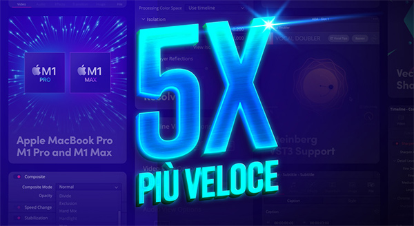 Apple è tornata a spingere sull'acceleratore con la presentazione dei nuovi MacBook Pro con processore M1 Max e i vari produttori di software lavorano di rincorsa per aggiornare i propri sistemi per sfruttare al meglio le potenzialità dei nuovi hardware. Tra essi anche Blackmagic Design, che ha prontamente rilasciato DaVinci Resolve 17.4. La nuova versione della suite di editing, montaggio e correzione colore arriva fino a quintuplicare la velocità di DaVinci Resolve sui nuovi Mac Apple con chip M1 Pro e M1 Max rispetto alle versioni precedenti.