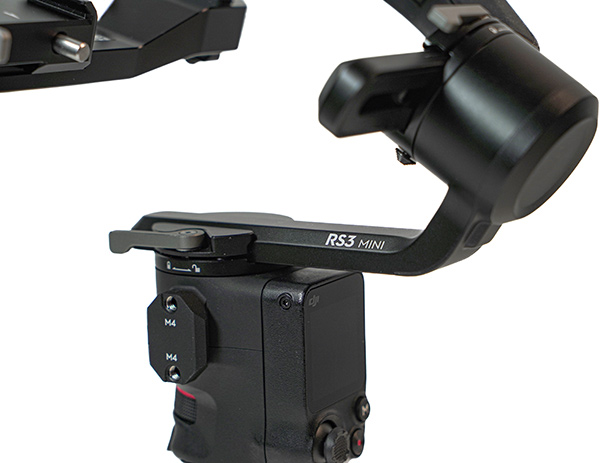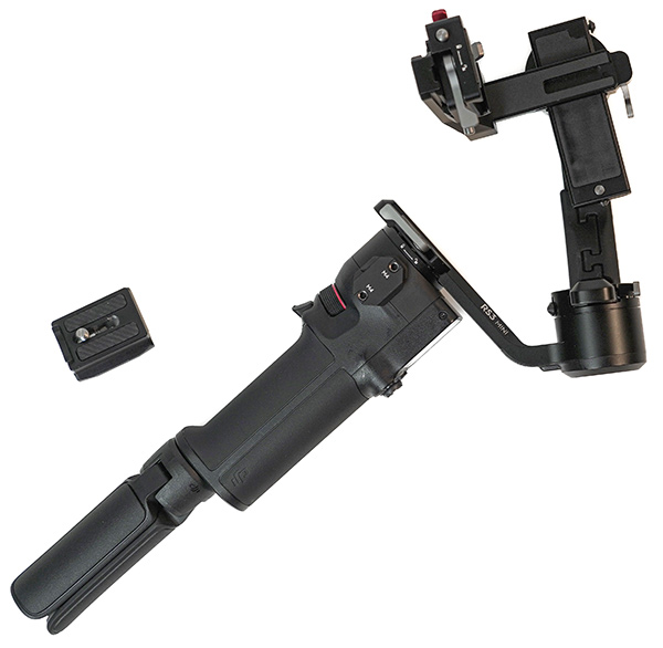 Dalla sua DJI RS 3 Mini è ben più leggero del fratello maggiore, con un peso di 795 grammi (in modalità verticale, 850 grammi con la piastra per l'uso in orizzontale) contro i 990 grammi dello stabilizzatore e 200 grammi dell'impugnatura con batteria di DJI RS 3 che arriva quindi a un totale di 1.190 grammi, a cui vanno aggiunte le piastre di aggancio da circa un etto.