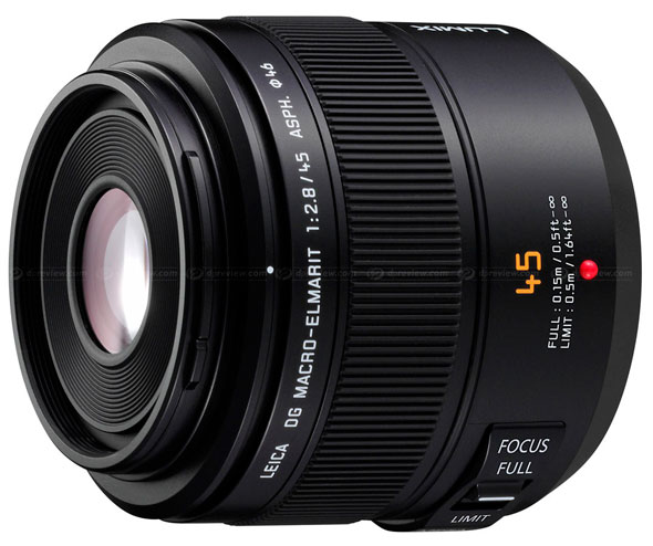 Il peso rimane comunque contenuto a 225 g nonostante il barilotto contenga il sistema di stabilizzazione di immagine Mega O.I.S., particolarmente utile nelle riprese macro. Anche per il 45 mm Leica viene adottato un diaframma circolare a 7 lamelle.