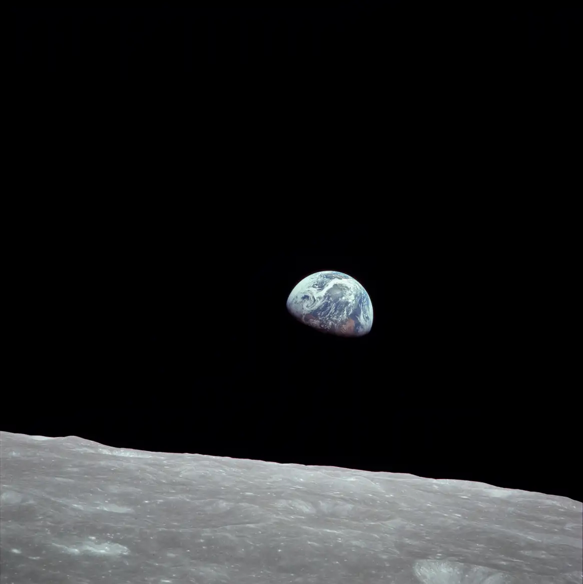 il 24 dicembre 1968, durante la missione Apollo 8 è stata scattata una delle fotografie più iconiche della storia: "Sorgere della terra". Si tratta di uno scatto che mostra il pianeta Terra parzialmente in ombra, con in primo piano il suolo lunare. "AS8-14-2383HR" è il codice della fotografia scattata dall'astronauta William Anders con un Hasselblad 500 EL.