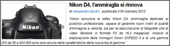 Nikon D4 con Compact Flash 16gb 1000x : 5800 Euro, nei negozi da fine marzo