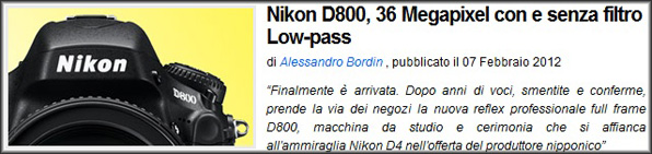 Nikon D800 con Compact Flash 8gb 400x: 2900 Euro, nei negozi da fine marzo