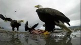 All'inizio del video si vede il gruppo di aquile "litigare" per cercare di prendere un boccone dal pasto. Subito dopo parte della carcassa è finita proprio sopra la fotocamera che stava riprendendo e probabilmente ha confuso uno degli esemplari che ha pensato che fosse un'altra parte della preda.