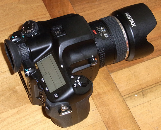 Pentax ha puntato sulla compatibilità con tutto il vecchio sistema 645, le cui ottiche sono pienamente compatibili e con cui sono compatibili anche gli obiettivi di nuova progettazione dedicati al digitale. Il pentaprisma è stato sostituito con un nuovo prisma trapezoidale e il mirino, veramente ampio una volta che si avvicina l'occhio all'oculare, ha una copertura del 98% e un ingrandimento pari a 0,62x con l'obiettivo 55mm. Il mirino offre in sovraimpressione i punti autofocus e, come il display (LCD da 3’’ e 921.000 punti), permette di visualizzare anche la livella. Essendo dotata di CCD la fotocamera non offre il Live-View a display.