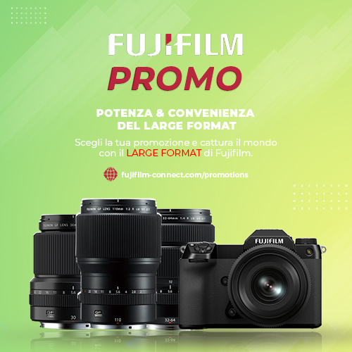 Per l’acquisto di FUJIFILM GFX100S si potrà ricevere un bonus pari a 500 euro iva compresa, mentre per l’acquisto di GFX50S II si potrà ricevere un bonus pari a 300 euro, permutando una fotocamera full frame o medio formato funzionante, tra i prodotti ritenuti idonei per l’offerta.