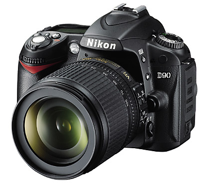 La D90 dispone di un mirino a pentaprisma con una copertura dell’inquadratura pari a circa il 96%. La capacità di raffica si attesta sui 4,5 fotogrammi al secondo. Con la Nikon D90 viene introdotta anche una nuova ottica, il nuovo obiettivo VR AF-S DX NIKKOR 18-105MM F/3.5-5.6G ED. Il nuovo obiettivo NIKKOR, con lunghezza focale compresa tra 18 e 105 mm, con una lunghezza focale equivalente a 27 - 157,5 mm in formato 35mm.