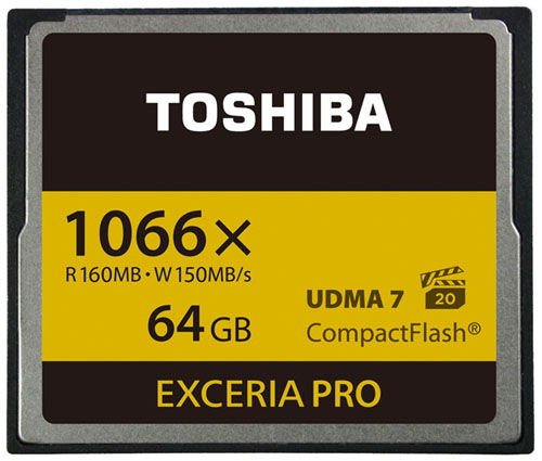 Toshiba con la sua nuova line-up punta a guadagnare un terzo del mercato CF entro il 2015. Per la gamma 2013 il produttore nipponico punta soprattutto sulla velocità di trasferimento dati, avvicinandosi al limite superiore teorico del formato, posto a 167MB/s. Con picchi di 160MB/s in lettura e 150MB/s in scrittura le nuove schede Compact Flash Toshiba Exceria Pro con interfaccia UDMA 7 da 32GB e 64GB garantiscono la registrazione di flussi video Full HD a 20MB/s. Nel caso del modello da 16GB la velocità di scrittura si ferma a 95MB/S. Al momento mancano informazioni su prezzi e disponibilità.