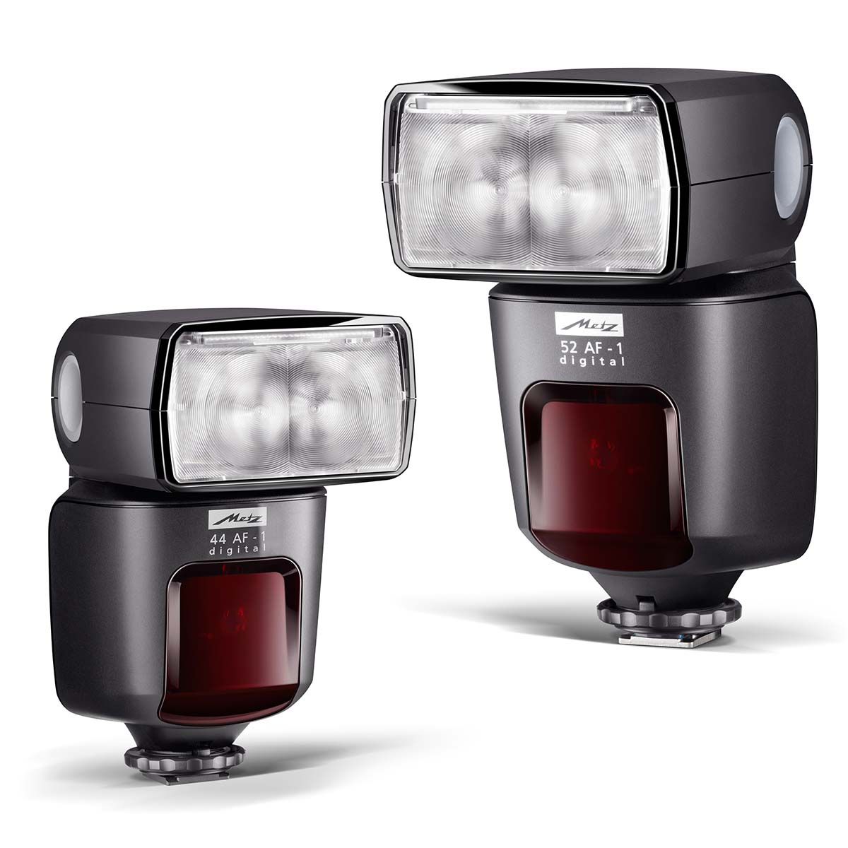 Il "piccolo" 44 AF-1 è apprezzato per la sua maneggevolezza, mentre il modello 52 AF-1, che qui funge da top di gamma anche se Metz produce per altri sistemi il più potente 58 AF-2, è un'unità amatoriale di alto livello caratterizzata da molte funzioni avanzate.