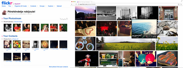 Flickr ha scelto di non farlo e in meno di una settimana dovrebbe proporre al pubblico un nuovo layout. In una intervista a BetaBeat, blog tecnologico del New York Observer, Markus Spiering, a capo della divisione prodotti di Flickr ha anticipato qualcosa del nuovo layout. L'approccio storico di Flickr è sempre stato quello di avere "molto spazio bianco, foto piccole e molte informazioni intorno".