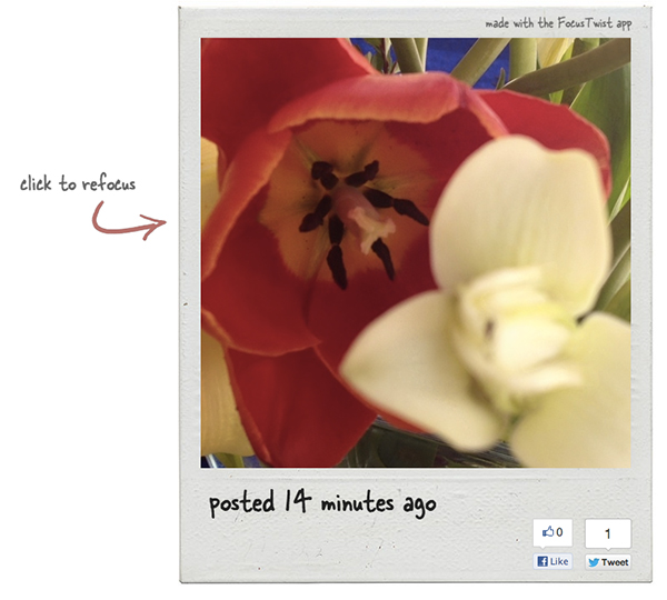 L'app tuttavia lavora in maniera completamente differente dalla piccola fotocamera: Focus Twist cattura infatti piú fotogrammi (in modo simile alla tecnica dell'HDR) modificando il punto di messa a fuoco per poi generare un file con tutte le informazioni sufficienti per poter selezionare a posteriori il punto di messa a fuoco. Ovviamente ė condizione fondamentale quella di tenere fermo sia il punto di ripresa che gli eventuali movimenti dei soggetti inquadrati (nonostante l'app prometta di gestire anche piccoli spostamenti per consentire lo scatto a mano libera).