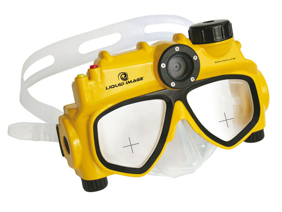 Per ovviare a questo inconveniente Liquid Image, linea di prodotti distribuita da SofTeam, ha pensato di mettere la fotocamera direttamente nella maschera, liberando le mani dell'utente. La linea è completa e parte da 99 euro con il modello Explorer 302, caratterizzato da una livrea gialla, in grado di scendere al massimo a 5 metri di profondità e quindi adatta per lo snorkeling. La maschera subacquea permette di scattare foto con risoluzione di 2560x1920 pixel e di riprendere video con risoluzione VGA a 20 fps. Lo slot per la scheda di memoria, di tipo MicroSD, può alloggiare modelli fino a 2GB di capacità (per 3000 immagini o 72 minuti di video circa).