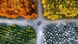 Nella galleria di fotografia coi droni non potevano mancare soggetti puramente naturali. Per esempio Reed Plummer e il banco di salmoni in formazione circolare o le foglie rosse, arancioni e gialle catturate da Kristina Makeeva.