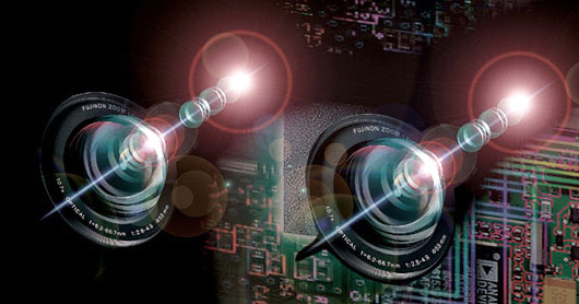 In pratica la ripresa avviene attraverso due distinti moduli composti da obiettivo e sensore, posti a una distanza simile a quella degli occhi umani. L'elettronica della macchina si occupa di stabilire i migliori parametri di scatto e a sincronizzare le due riprese.