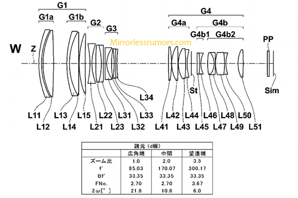 Sul versante relativo alle tecnologie digitali invece Fuji continua la sua strada cercando di ampliare il sistema di fotocamere X. Il produttore nipponico ha infatti recentemente rilasciato un brevetto relativo ad un'ottica zoom XF 85-300mm F2.7-3.7. Probabilmente si dovrebbe trattare dell'obiettivo in roadmap da tempo è definito fino ad ora da Fuji con un generico "Super Telephoto zoom lens".