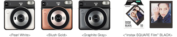 La fotocamera viene offerta in tre livree: Pearl White, Blush Gold e Graphite Gray. Include in confezione tre gelatine (arancio, rosso e verde) per modificare la luce del flash. Oltre alla fotocamera Fujifilm annuncia l'arrivo sul mercato anche delle pellicole a formato quadrato con cornice nera.