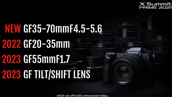 Nel recente evento di presentazione delle novità per la fine del 2021 (la mirrorless APS-C X-T30 II, le ottiche XF 33mm e 23mm F1.4, la medio formato più economica di sempre GFX 50S II e lo zoom leggero e compatto GF 35-70mm), Fujifilm ha dato un assaggio anche di quello che sarà il futuro in campo ottiche. Abbiamo già parlato dei due nuovi zoom che entrano nella roadmap della Serie X, XF 150-600mm e XF 18-120mm, ma Fujifilm ha annunciato anche novità per il futuro sul medio formato.