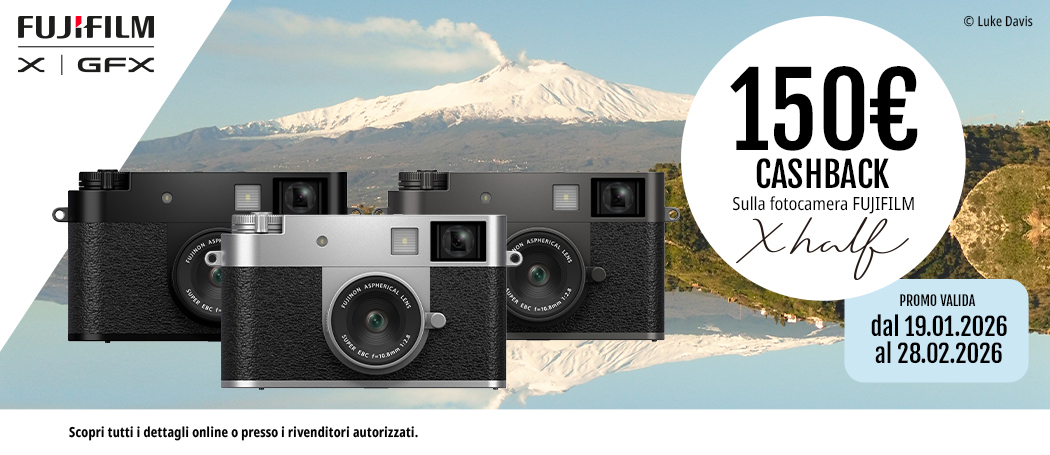 La fotocamera digitale compatta FUJIFILM X half è oggetto di una nuova iniziativa promozionale annunciata da FUJIFILM Italia che permette di ottenere un rimborso pari a 150 euro IVA inclusa per ogni unità acquistata tra il 19 gennaio e il 28 febbraio 2026 presso i rivenditori autorizzati in Italia.