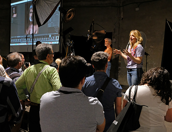 Molto coinvolgente per il pubblico è stato il seminario sul workflow fotografico professionale con Fujifilm GFX 50S a cura della fotografa Marianna Santoni. La medio formato di casa Fuji è stata usata dal vivo per una sessione di ritratto con collegamento in tethering al computer e sviluppo in diretta con con Adobe Lightroom.