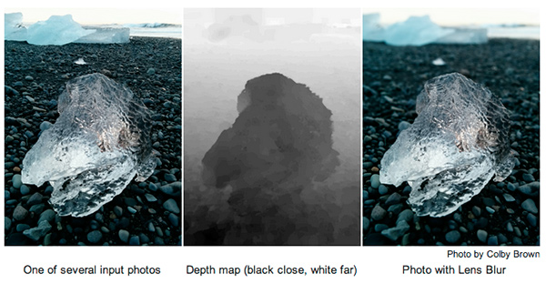 Lens Blur è una nuova modalità che Google ha inserito nella sua Google Camera app e che, creando una vera e propria mappa della profondità, riesce a simulare in modo efficace lo sfocato, anche in modo dinamico e regolabile in fase di visualizzazione. Mentre si sta guardando una foto è possibile toccare il soggetto che si vuole mettere a fuoco e regolare la quantità dello sfocato agendo sul comando a scorrimento, vedendo l'immagine renderizzata in tempo reale.