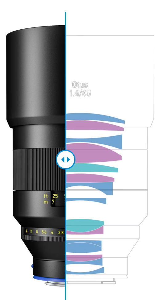 ZEISS Otus ML 1.4/85 si basa su design Sonnar da 15 elementi in 11 gruppi e ha una distanza minima di messa a fuoco di 80 centimetri.