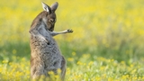 Per questo i Comedy Wildlife Photography Awards hanno uno spirito diverso rispetto ad altri premi legati alla fotografia, mostrare il bello e divertente della natura (senza farci dimenticare di proteggerla). A vincere l'edizione 2023 è stata la fotografia dal titolo Air Guitar Roo realizzata da Jason Moore nella sua terra, l'Australia. Come si può vedere il canguro sembra suonare una chitarra elettrica nella tipica posizione di chi fa le mosse dell'air guitar. Moore aveva notato un gruppo di canguri grigi che si trovavano in un campo intenti a nutrirsi ma in particolare quell'elemento ha attirato la sua attenzione per la posizione così strana e divertente.
