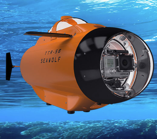 I droni sono uno dei fenomeni del momento, anche se in Italia il proliferare di regolamenti sta spegnendo alcuni degli entusiasmi iniziali di molti. Se diventa complicato fa alzare in volo il proprio apparecchio multi-rotore quale può essere la soluzione per gli aspiranti piloti/cameraman? Scendere sott'acqua! Questo è quello che propone Seawolf, un vero e proprio drone sottomarino, in grado di portare una GoPro fino a 8 metri di profondità, con controllo remoto, velocità fino a 3,5 km/h e con autonomia fino a 50 minuti.