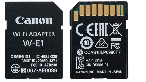 Il nuovo adattatore Wi-Fi Canon W-E1 ha la forma e l'ingombro di una scheda SD e si inserisce nello slot delle reflex EOS compatibili, quelle caratterizzate dal doppio slot SD. Interessante la mossa del produttore nipponico: l’adattatore Wi-Fi W-E1 sarà incluso nella confezione di Canon EOS 7D Mark II, offrendo così agli appassionati la possibilità di controllare la fotocamera in modalità wireless anche se essa nasce priva di tale funzionalità, sempre più usata anche dai professionisti e dagli amatori evoluti. Il nuovo adattatore Wi-Fi W-E1 sarà disponibile a partire da fine Ottobre al prezzo suggerito al pubblico di € 50,49.