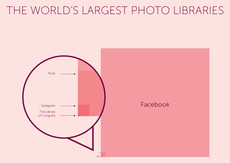 Servizi dalla lunga storia (come Flickr) o di grande tendenza (come Instagram) rappresentano dei bruscolini se confrontati con Facebook, che in molti casi addirittura li ingloba, in quanto le foto memorizzate nei due servizi spesso vengono in modo automatico condivise anche su Facebook. Una volta ognuno aveva la classica scatola di scarpe piena di foto, la cui revisione era accompagnata dalle classiche domande 'Questo chi è?' oppure 'Qui dove eravamo?': nessuno avrebbe mai detto che in pochi anni si sarebbe passati a uno sterminato catalogo online, condiviso con migliaia di persone, georeferenziato e con il riconoscimento facciale.