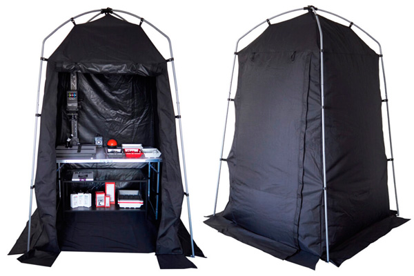 La camera oscura portatile è pensata per i fotografi che si dilettano con la pellicola e desiderano sviluppare e stampare i propri negativi, ma che magari non dispongono degli spazi sufficienti per poter allestire una camera oscura. Ilford ha allora ideato questa sorta di "tenda" tenendo presente l'altezza del soffitto delle abitazioni in tutti i continenti, e realizzando quindi una struttura alta circa 2,2 metri e con una base di 1,3x1,3 metri che consente di effettuare operazioni di sviluppo e stampa quando l'utente è seduto o in piedi. La struttura integra una presa d'aria che consente di aggiungere una ventola, e un'altra presa d'aria più piccola è presente nella parte superiore per collegare un bocchettone per l'aspirazione dei vapori chimici.