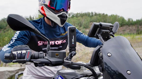 L'interfaccia utente della videocamera incorpora elementi di BMW Motorrad, inclusa una nuova sovrapposizione delle statistiche. Questa funzionalità permette di visualizzare informazioni come velocità e direzione direttamente sul video a 360°, creando contenuti immersivi e informativi che catturano l'essenza di ogni corsa.