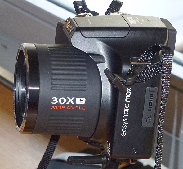 La nuova Kodak Easyshare Max si prefigge proprio questo scopo: presente nella line-up presentata al CES 2011, è stata indicata da Kodak come il modello di punta di questa primavera-estate. La scheda tecnica riporta la presenza di un sensore CMOS retroilluminato da 12 megapixel, nel classico formato 1/2,33 utilizzato dalle bridge superzoom. L'ottica è marchiata Schneider-Kreuznach Variogon e offre 30x di zoom ottico con una focale equivalente 28-840mm e apertura f/2.8-5.6. Buona dal punto di vista della luminosità indugia maggiormente sulle lunghe focali trascurando un po' quelle grandangolari, forse sarebbe stato meglio sacrificare qualche mm di tele per offrire un grandangolo pari a 26 o 24mm.