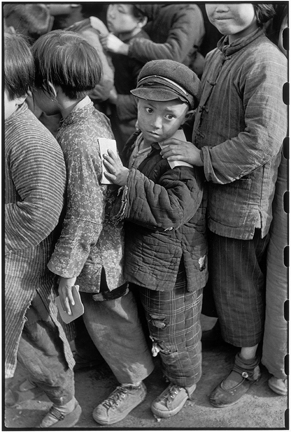 China Welfare, opera di carità di Madame Sun Yat-sen: bambini aspettano la distribuzione di riso. Shanghai, marzo 1949 Gelatin silver print, 1970s © Fondation Henri Cartier-Bresson / Magnum Photos