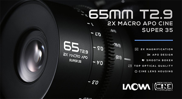 In particolare Laowa 65mm T2.9 2x Macro APO Cine è la prima ottica Cine per il formato Super 35mm a offrire rapporto d'ingrandimento 2x, grazie alla distanza minima di messa a fuoco di soli 7 centimetri. È disponibile con baionetta Canon EF e RF, Fujifilm X e Nikon Z.