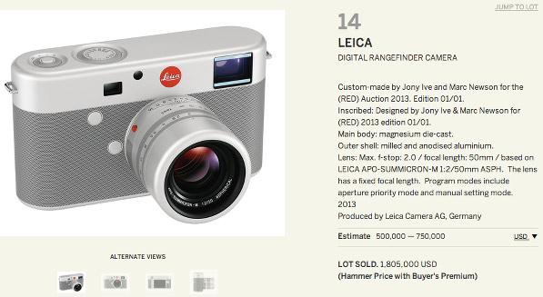 Sotheby's aveva stimato di poter raccogliere da one-of-a-kind Leica M una cifra compresa tra $500.000 e $750.000, ma invece ha visto il prezzo finale arrivare a $1.805.000, ampiamente sopra il doppio della cifra massima stimata. In totale sono stati raccolti 26,2 milioni di dollari per la causa di RED grazie ai prodotti all'asta.