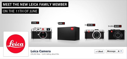 La prossima novità, il cui teaser indica l'11 giugno come data di presentazione, è Leica Mini "M". Al momento non si ha nessun dettaglio ufficiale, se non un'immagine che ne indica il posizionamento tra Leica M e la compatta a ottica fissa e sensore APS-C Leica X2, ma le speculazioni sono molte. Una delle più in voga è quella che prevede un prodotto basato sul recente sensore CMOS Full Frame da 24 megapixel, ma privo del sistema a telemetro e basato invece sul solo Live View, funzionalità introdotta in Leica M proprio all'ultima tornata di rinnovamento con il nuovo sensore.