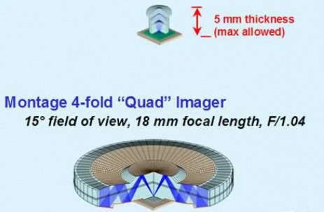 La diminuzione delle dimensione dell'ottica è stata ottenuta mettendo una lente dentro l'altra, in maniera concentrica e sfruttando la riflessione interna per far fare alla luce tutto il cammino che farebbe in un lungo barilotto, dalla lente frontale, fino a quella posteriore e poi sul sensore.